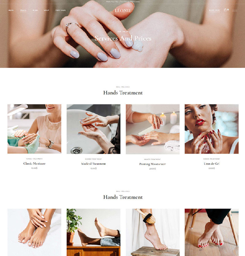 Léonie comes with fully flexible reservation forms as well as a dedicated treatment booking page layout